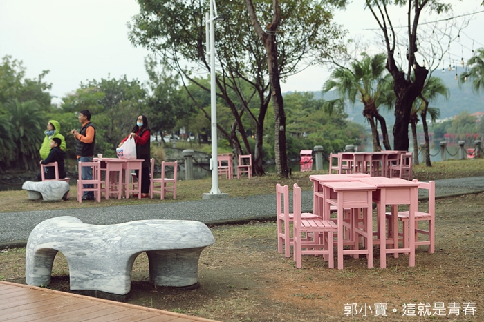 | 趁著過年時間趕緊來到這前幾天才開幕的愛之川站,愛之川站是高雄非常心的景點,佈滿粉紅色的愛心世界,這個地點就在高雄願景橋旁的草地上,目前有規劃電動天鵝船給民眾搭乘,欣賞愛河兩岸的景色,加上草地上的有鳥咖啡貨櫃,一整個就超討喜的啊! |