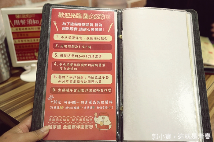 | 我家太妃是一個完完全全的韓國食物迷,每次只要提到韓國食物,她就會異常開心,這一天她特地拿了很多臉書介紹這家起家雞的資訊給我,說看起來好好吃,好多人都說很好吃,所以我們這天晚上就出現在板橋的起家雞了,老婆的話千萬別做任何抵抗,真的,家和萬事興,老婆不高興全家都遭殃XDDDD |