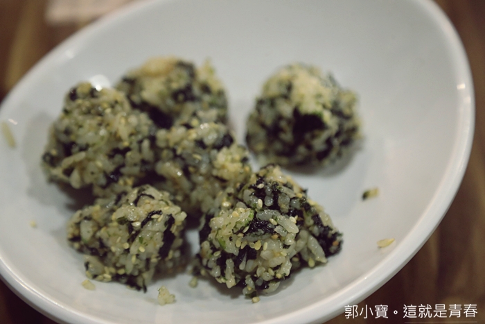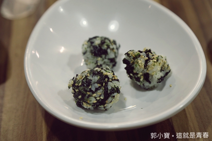 | 我家嬰皇的飯糰就做好了,白飯吃起來帶點濕潤感,海苔跟白芝麻本來就是白飯的好朋友,吃起來還不錯,但是沒有特別驚艷,在家應該也可以做得出來。 |