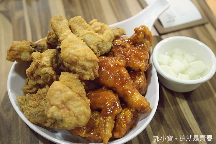 | 吃了兩三塊後對我來說洋釀我真的沒辦法,太妃覺得他們家的洋釀還好,還是沒有韓國本地的炸雞好吃,且她也不喜歡她外層裹的粉,但相對來說她們家的洋釀本身確實還不錯。 |