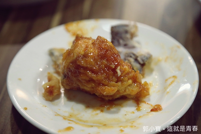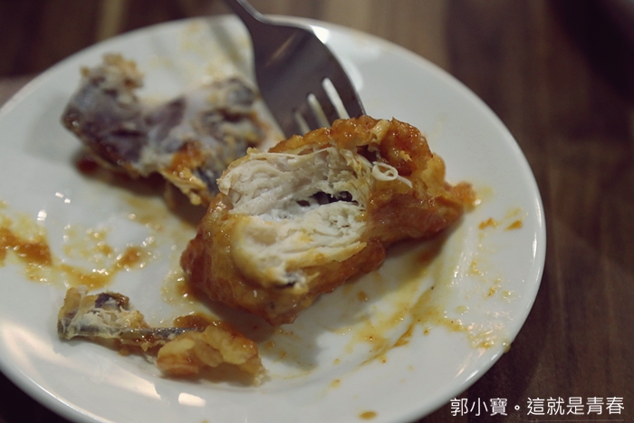| 其實有原味炸雞對我來說是比較好的,我身體裡面住著老靈魂,我真的不是很愛炸機上面塗一堆醬,我喜歡原味一口咬下噴發的肉汁跟嫩口的雞肉。 |