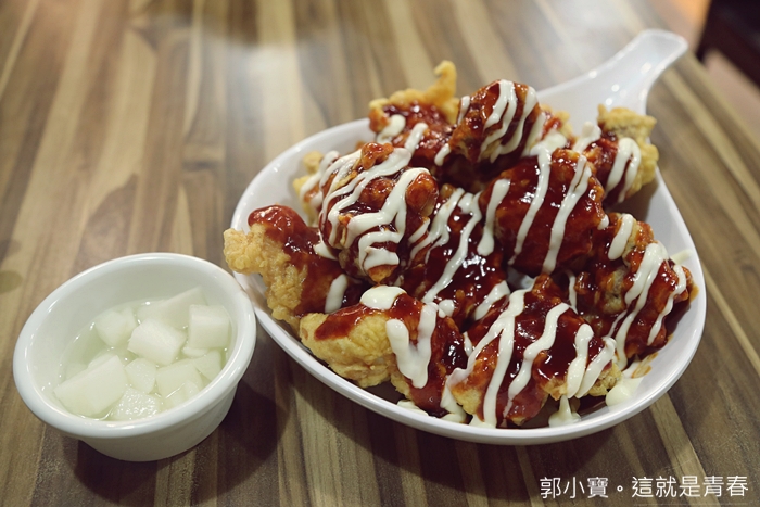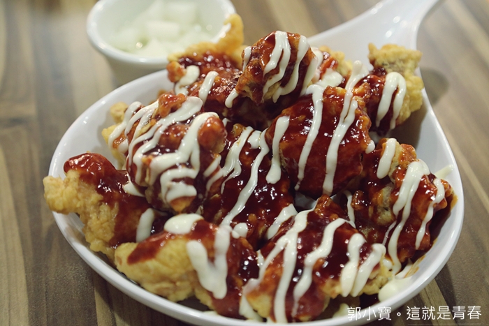| 就是韓國的辣醬的滋味,再加上一點美乃滋,真的味道很不錯,辣在前面不會一直吃舌頭,加上剛炸上來熱呼呼一口吃下真的還滿過癮的。 |