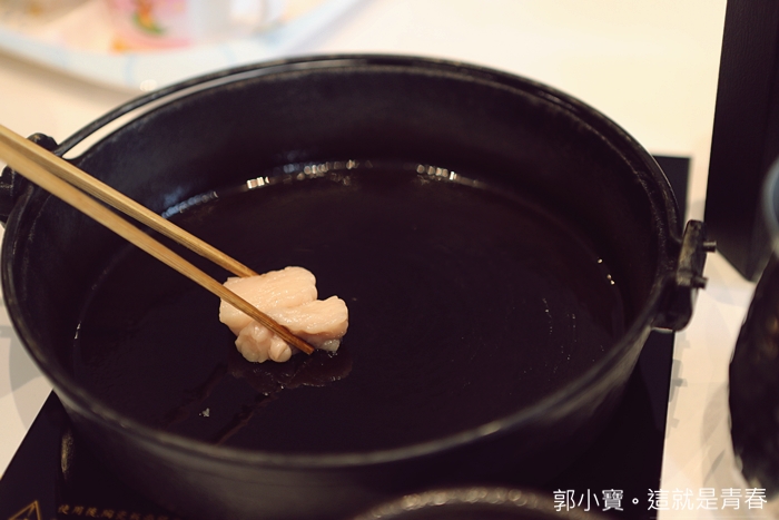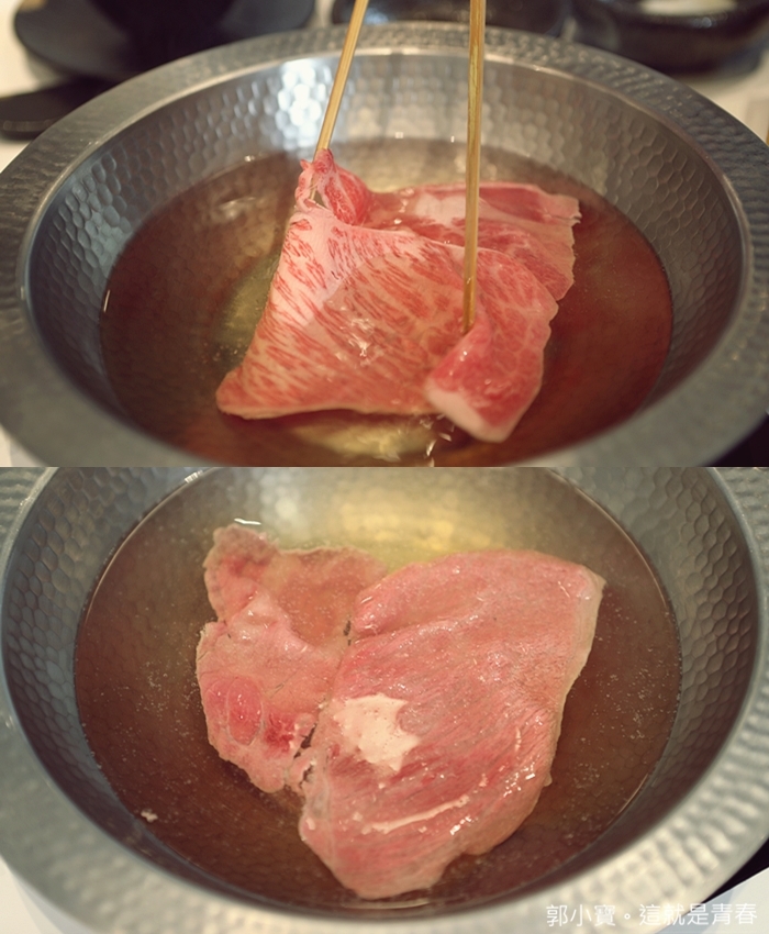 | 湯頭是使用昆布高湯,將牛肉放入鍋內涮一下就可以起鍋了,牛肉也不會一夾就散,放入鍋內一下就變成了粉嫩色了XDDD |