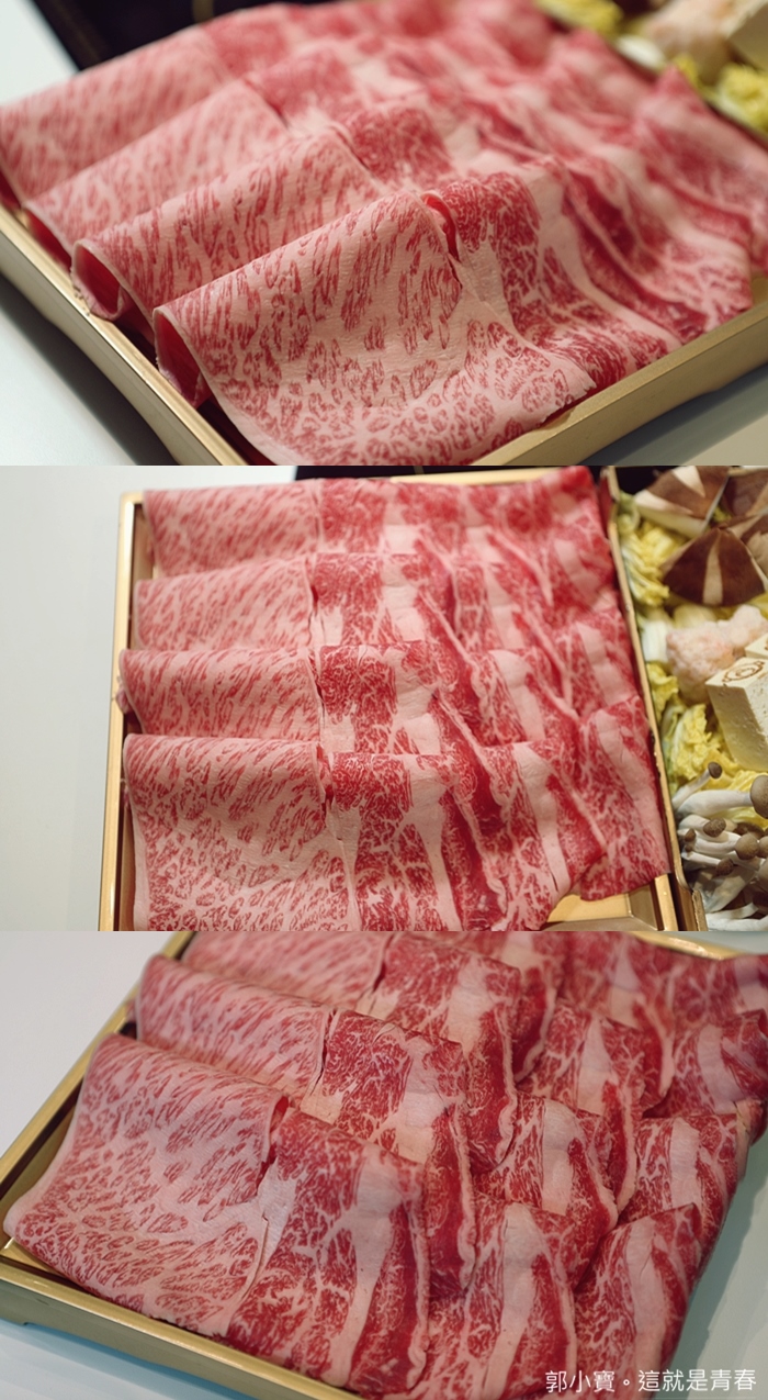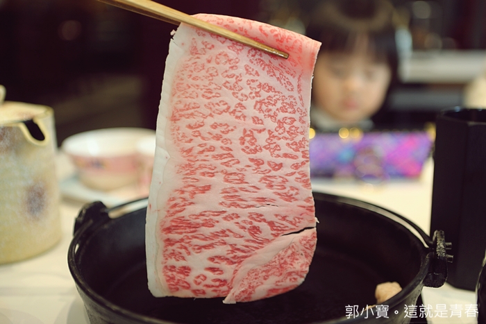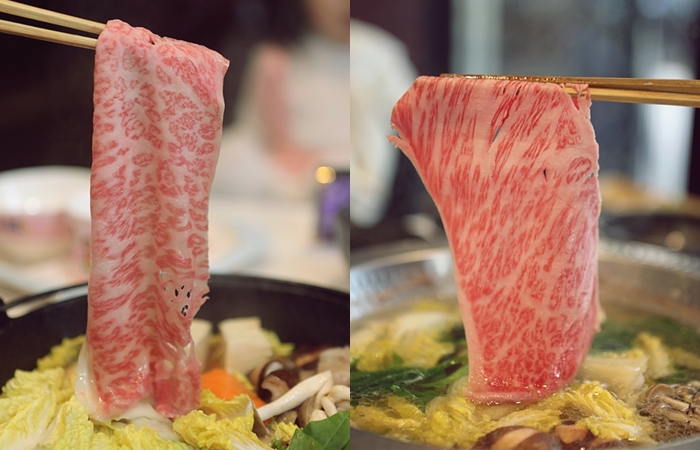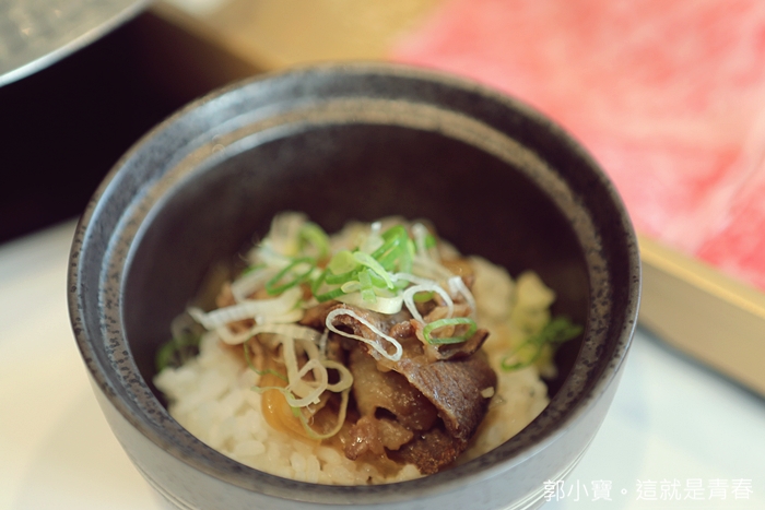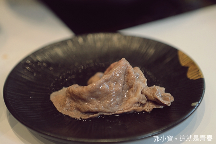 | 我們夾的太慢了有點過熟,壽喜燒醬的味道基本上會逮點偏甜鹹的滋味,單吃的話味道還滿重的,搭配豐沛油脂的肋眼部位,放在嘴裡彷彿都像是會融化一般的軟嫩。 |
