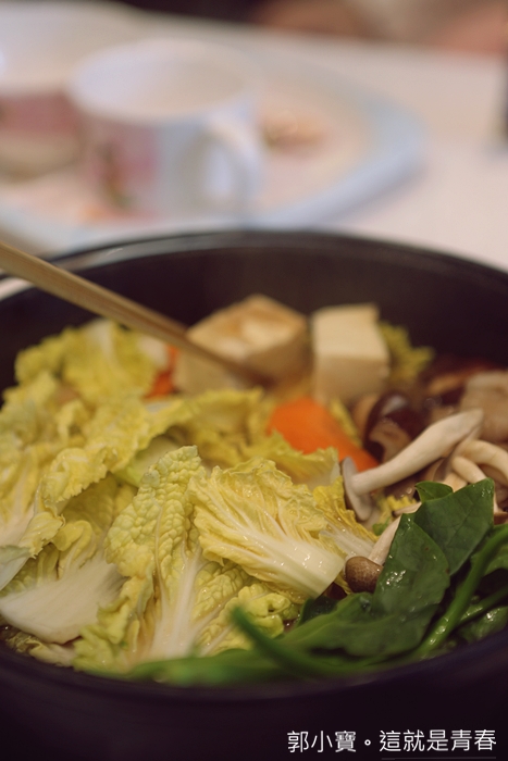| 綜合菜盤我比較喜歡搭配壽喜燒鍋,因為對於注重湯頭的台灣人來說,涮涮鍋的味道真的太淡了,加上即使有綜合菜盤還有和牛的油脂,基本上如果沒有做成雜炊都是枉然,所以最直接就是上壽喜燒鍋,淋上壽喜燒醬汁! |