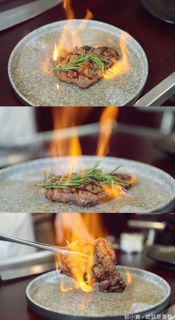 | 我們還點了一樣華國但馬屋非常有人氣的炙燒牛排,華國的牛排館本身的知名度就很高了,現場廚師會推推車來你的面前直接製作。 |