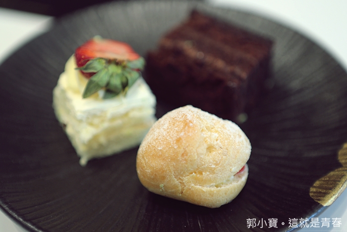 | 甜點的部份則是會推出一台甜點車給客人選擇,總共有六款甜品,每個人可以選三種,所以我們家就直接一種個一個,兩個人剛好六款一次入手。 |