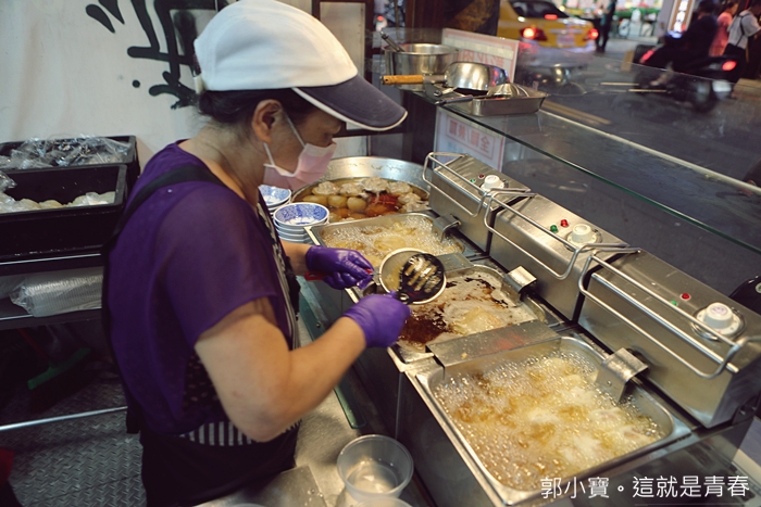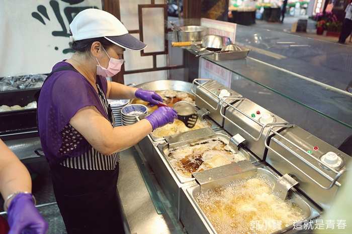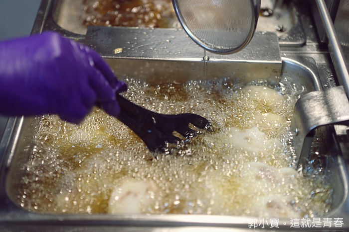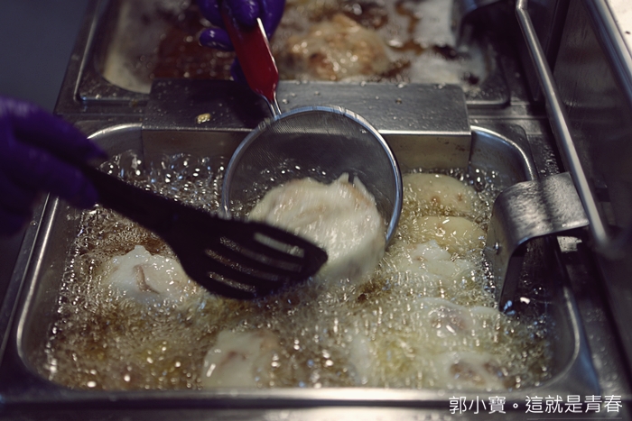 | 其實阿嬤的速度還滿快的,但是確實也很仔細的顧著肉圓的熟度,一直撈起每個肉圓仔細查看,看著油鍋熱騰騰的肉圓真的很讓人流口水。 |