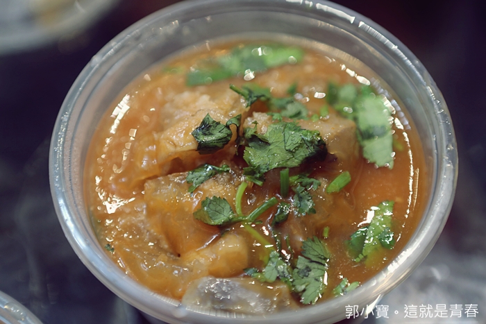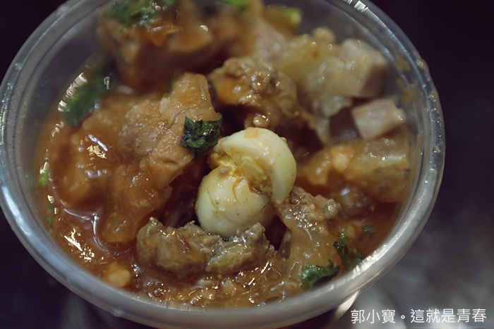| 肉塊給得滿大的,帶點胡椒的香氣,裡面還有鳥蛋等配料。 |