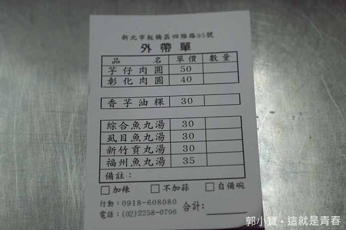 | 不管是外帶還是內用,阿嬤都特別交代我蒜頭辣椒要不要加都要寫清楚,因為有時候生意一忙沒寫的話很容易弄錯,仔細看了一下價位也沒有很貴。 |