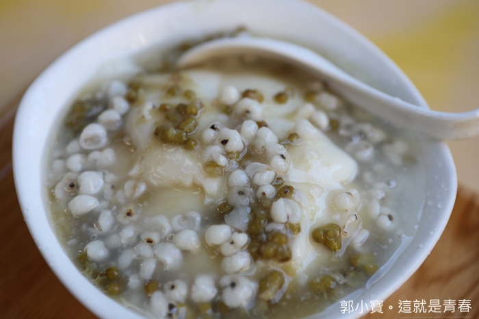 | 這一碗滿到不行的綠豆薏仁豆花才賣45真的也太便宜,本來我跟太妃還想說不是黑糖糖水有點失望,但是吃了第一口後真的還滿驚艷的,他們家的糖水真的很讚,不會很死的那種甜膩,且冰冰涼涼的超好吃,薏仁跟綠豆的量也很多。 |