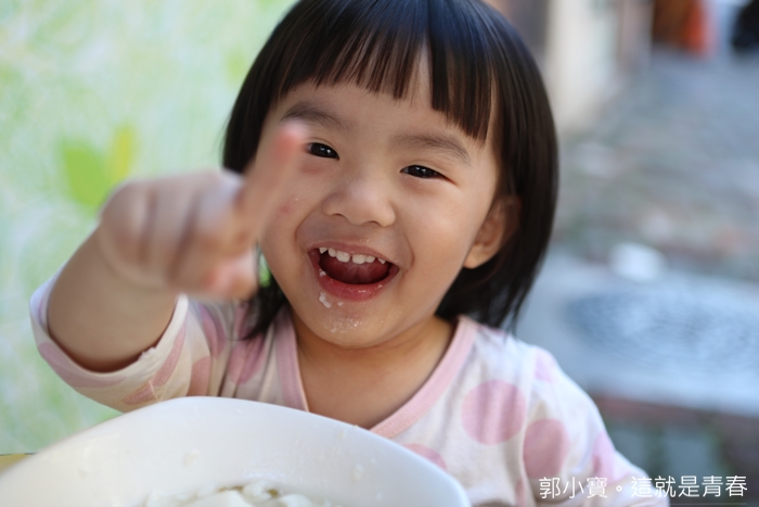 | 大口大口的豆花停不下來,吃了一整個樂開懷,感覺這麼一大碗她一個人就可以嗑光了,現場也超多家長帶小朋友一起來吃冰消暑,瞬間讓人暑氣解了不少,很讓人吃了會上癮的手工豆花店,比起台南那幾個名店我覺得文聖豆花更好吃XDDD |