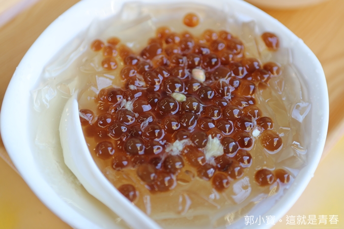 | 夏天來一碗粉圓愛玉真的太舒服了,看看滿滿的粉圓晶瑩剔透真的賣相100分,一點點的碎冰讓整晚愛玉更加清涼,糖水跟檸檬配合得剛剛好,不會太酸也不會太甜,這一碗酸甜比例真的抓得很完美。 |
