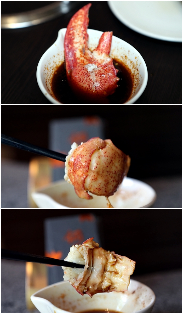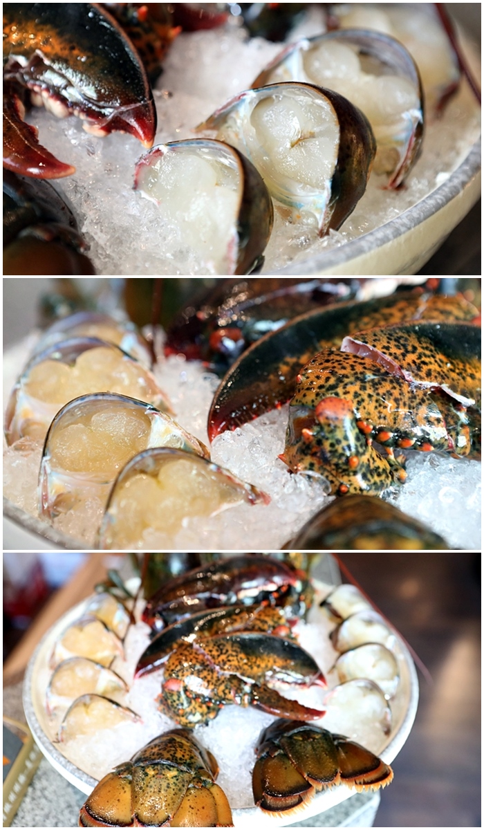 | 活跳跳的龍蝦直接處理就是優,蝦肉看起來就是讓人口水直流,我個人比較好奇的是波士頓龍蝦直接活體料理的時候,呈現出來的肉的顏色似乎有點不同,問了一下工作人員,她說這樣是正常的,通常都會有這兩種顏色!! |