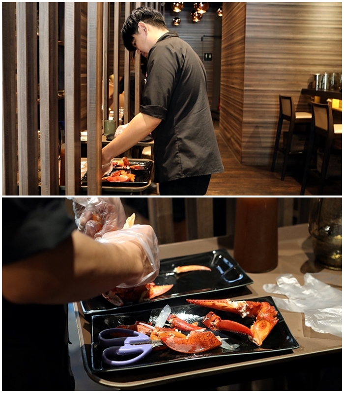 | 工作人員會幫忙看一下龍蝦肉的部分,而且還會幫客人把龍蝦的大螯直接幫忙去殼,客人只要在桌子上等去殼的龍蝦就可以了,對於討厭剝殼的人來說,這真的是一大佳音。 |