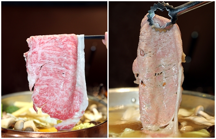 | 這樣的和牛品質幾乎涮個幾秒就可以起鍋了,老實說我真的是邊拍牛肉邊流口水。 |