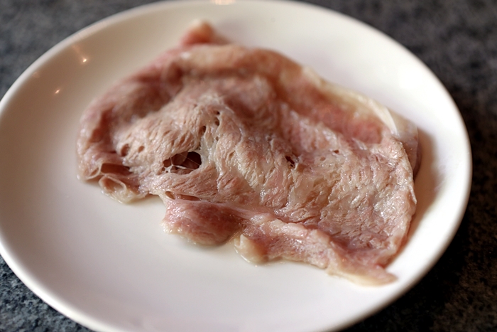 | 日式豆皮我真的倒是很少很少看到,薄薄的一張下鍋涮一下就可以起鍋了。 |