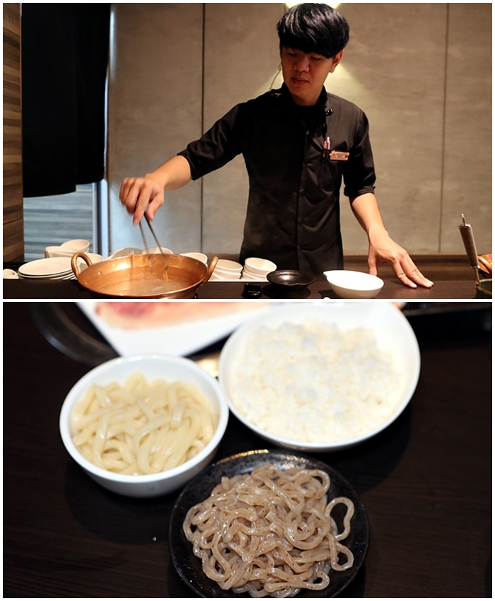 | 主食的部份除了白飯以外還有烏龍麵跟蕎麥麵,這兩款麵食也是店內的服務人員會直接幫你煮好在拿上來,避免昆布鍋沾附太多麵粉雜質,真的非常貼心。 |