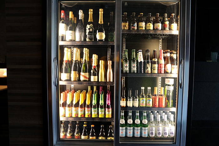 | 銅花精緻涮涮鍋另一個特色就是它們家的冰箱也很重要,裡面有著各式各樣的美酒可以搭配。 |