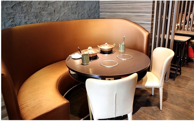 | 銅花精緻涮涮鍋最經典就是它們的座位很多都採取這種半圓形包廂,深受超多女性朋友喜愛,且目前美術館店還有二樓,二樓可以容納的人數非常多,很多公司都訂這邊邊吃飯邊開會XD |