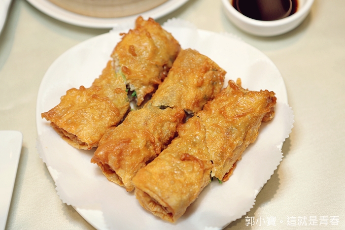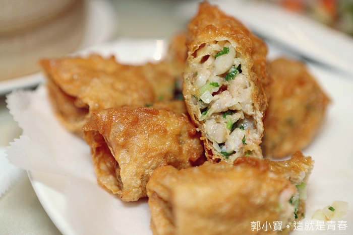 | 剛炸上來熱呼呼的腐皮蝦卷,腐皮蝦卷也是我喜歡的菜色,基本上我來朝桂餐廳這幾道都是招牌必點,重點是腐皮蝦卷的外皮真的非常酥脆,而且還不會油膩真的很厲害,每一口都超享受的!! |