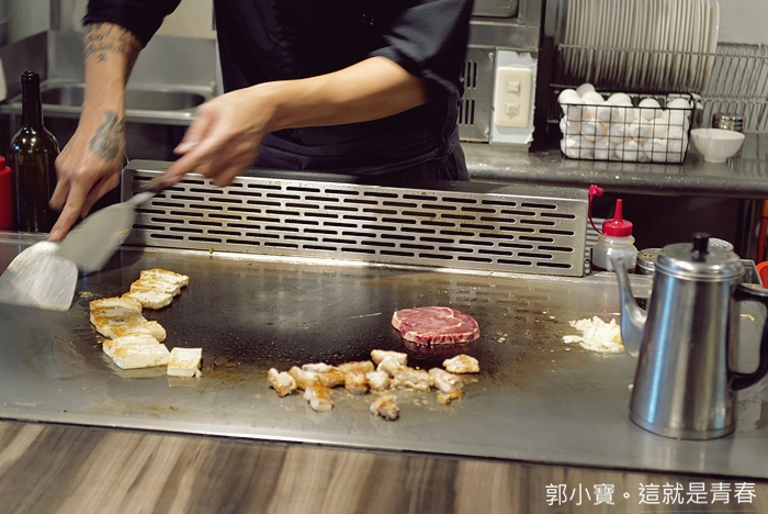 | 羅西先生鐵板料理感覺起來是一對夫妻經營的,羅西先生負責站鐵板台,另一個人幫忙其他大小事務跟結帳,雖然人潮很多但是並沒有太大的油煙味,且店內的裝潢還算是小清新,一身黑制服的羅西先生感覺頗為帥氣。 |