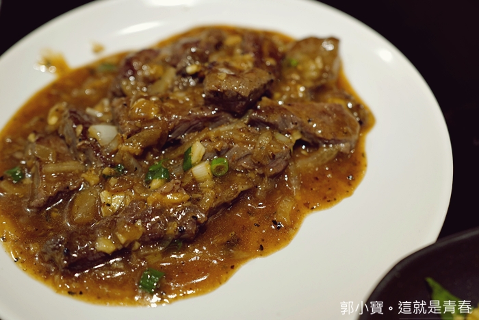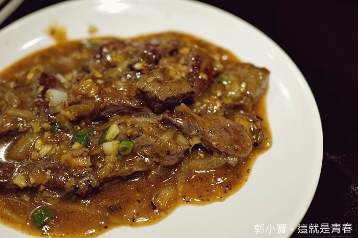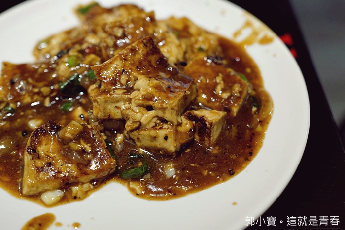 | 鐵板豆腐的調味也是使用黑胡椒醬汁,但是豆腐本身老皮嫩心的口感我很喜歡,火侯貞的拿捏得非常好,價位也再能接受的範圍裏面。 |