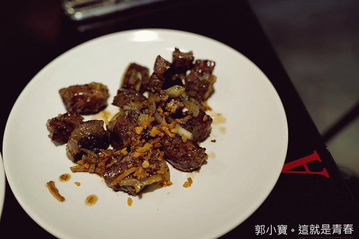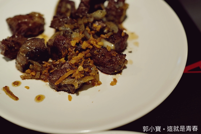| 蒜香板健的部分我不知道該怎麼說,蒜香處理的恰到好處,調味真的也很優秀,但是肉真的讓我有點卡牙,卡到一整個不行,相比沙朗來說真的差了許多。 |