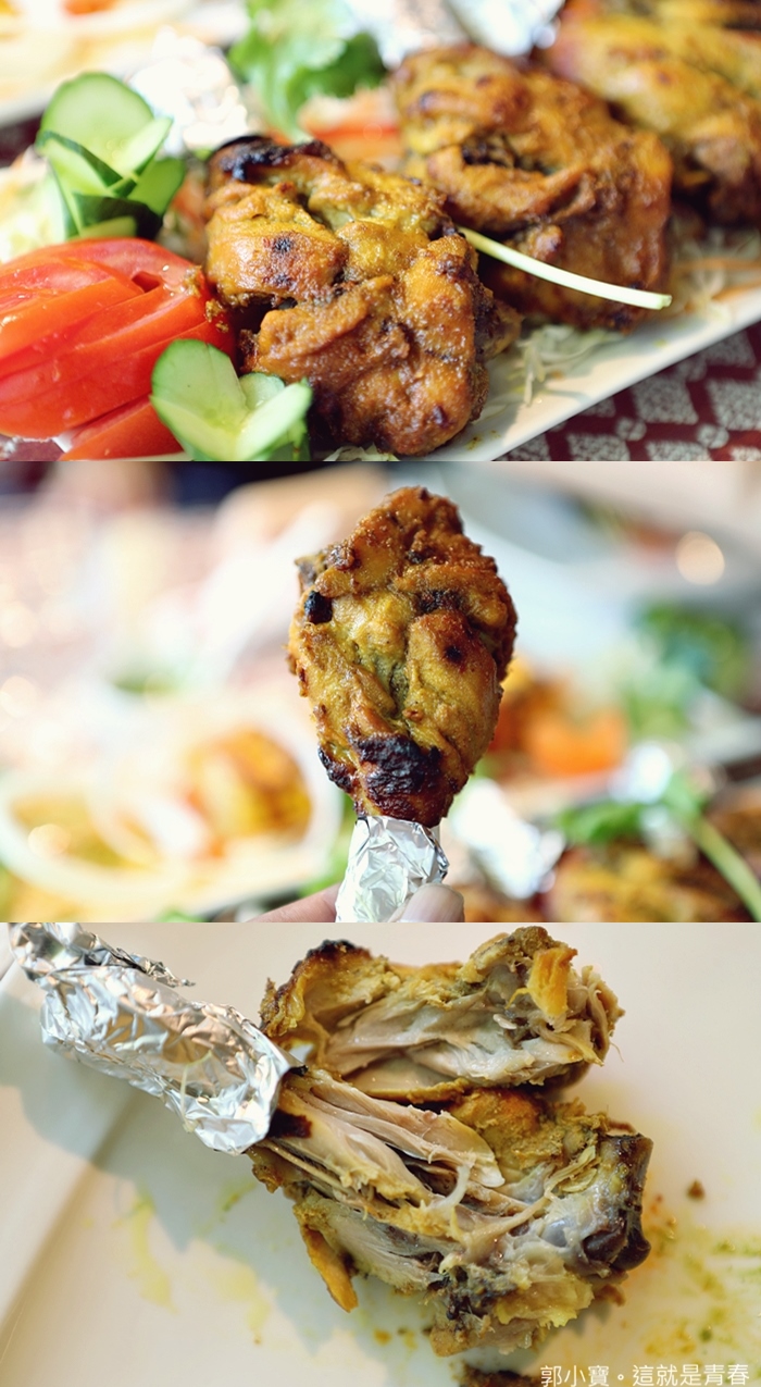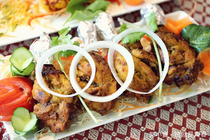 | 印式烤雞腿也是很多印度餐廳必備菜色,又獨特的印度香料醃漬,然後經過炭烤讓整個香氣濃郁,雞腿肉非常的嫩口多汁,連我家嬰皇也吃得很過癮,我本來以為是帶辣的咖哩味,我個人會比較喜歡辣度高一點的咖哩味碳烤雞腿啦XDD |