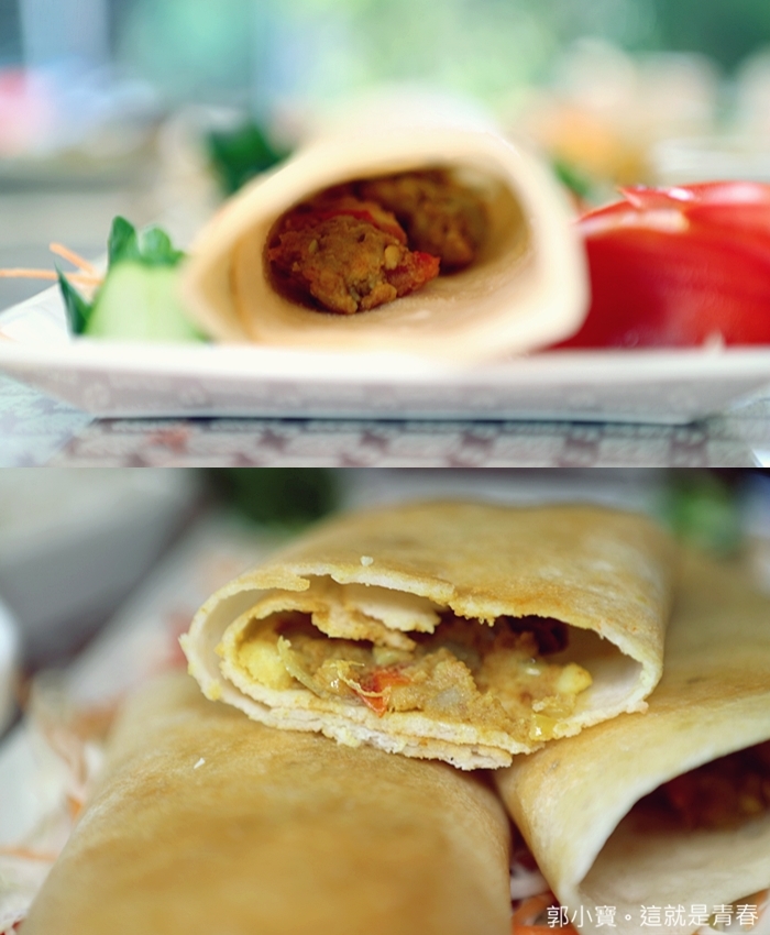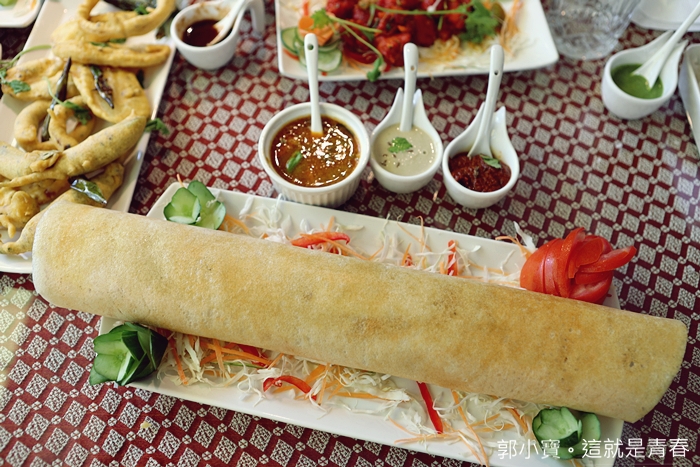 | 瑪莎拉是印度當地非常有名的香料名子,很多街邊小吃都會使用這種香料,算是很經典的香料,這一份馬沙拉豆沙也是很傳統的印度美食,光是搭配的醬料就有三款,分別是黃扁豆咖哩醬、辣椒醬、椰子醬三款。 |