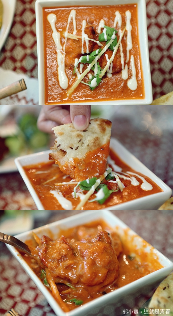 | 來印度餐廳就是要瘋狂點咖哩,基本上我個人去印度餐廳都很喜歡約很多朋友,然後開始狂點餅皮跟各種咖哩搭配著吃,辣味羊肉咖哩根本就是我的菜,重點是辣味夠,是我每天都想念的咖哩味道,羊肉的部份帶點腥味,但是我個人就愛羊肉的些許羊騷味啊XDD |