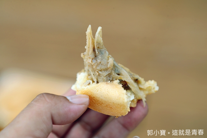 | 一口咬下那軟綿的口感,軟綿口感來自於馬鈴薯泥,搭配著菜脯的滋味還有黑胡椒的香氣,很合我的胃口,我本來就比較喜歡吃鹹點,加上它屬於口味重一點的車輪餅,青畑九號豆製所本身辣菜脯的口味就很有名了,這新口味的豐富度更是提升了一個境界。 |