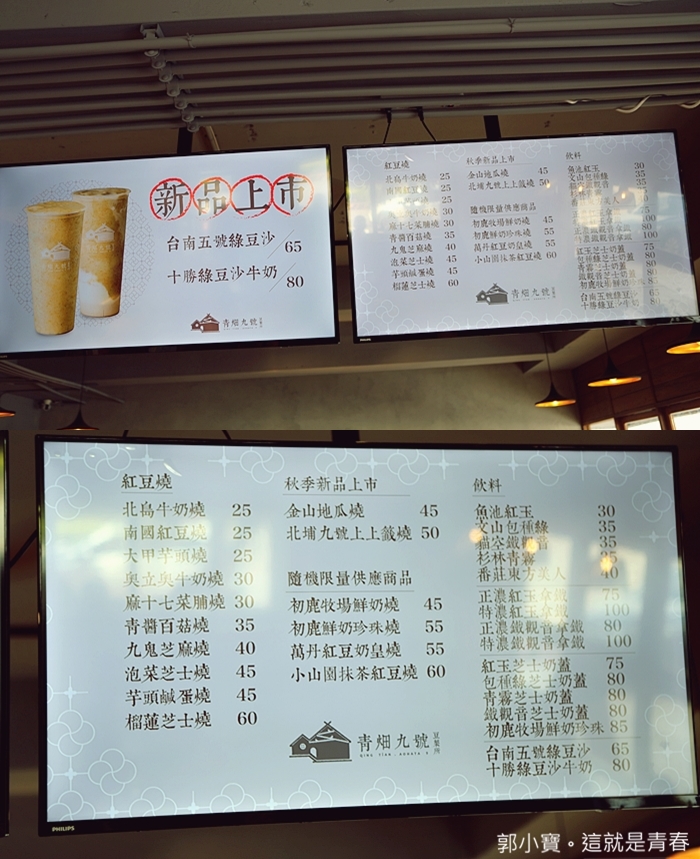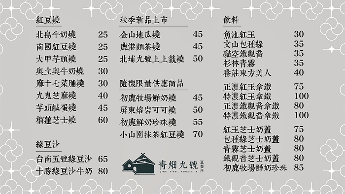 本來以為青畑九號豆製所只是很單純販售車輪餅的商家,但是到現場後才知道原來賣的不只車輪餅,還有很多冰品飲品,意外的還有現在很夯的濃豆漿。