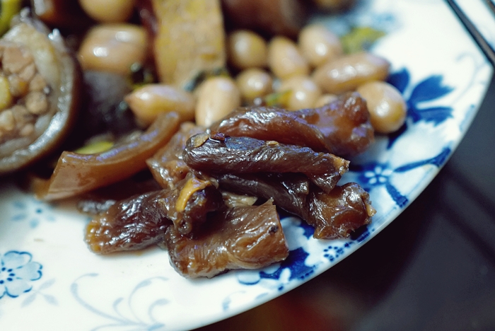 | 毽子肉的部分我覺得處理的也不賴,真的比較不會乾柴卡牙,整體一路吃下來確實也不會那麼重鹹,可能是想走健康衛生路線的滷味。 |