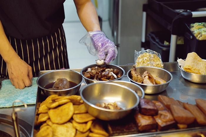 | 瀧品滷坊其實我覺得他們家幫客人的滷味加入還挺費工的,老闆都一個一個相同類別的品項慢慢加熱魯,所以等待時間會長了一點,但是可以感受到她的細心。 |