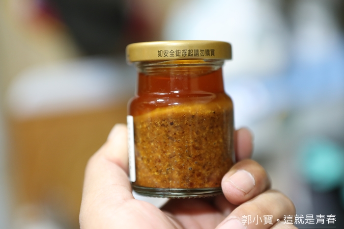 | 看看這手工沙茶醬就是我朝思暮想的台南老味道,可以看的出來油品很乾淨,下方沉澱的就是沙茶,要吃前建議現搖晃一下,以前去他們家吃涮牛肉都想偷挖一大包他們家的沙茶醬,現在直接罐裝送到家。 |