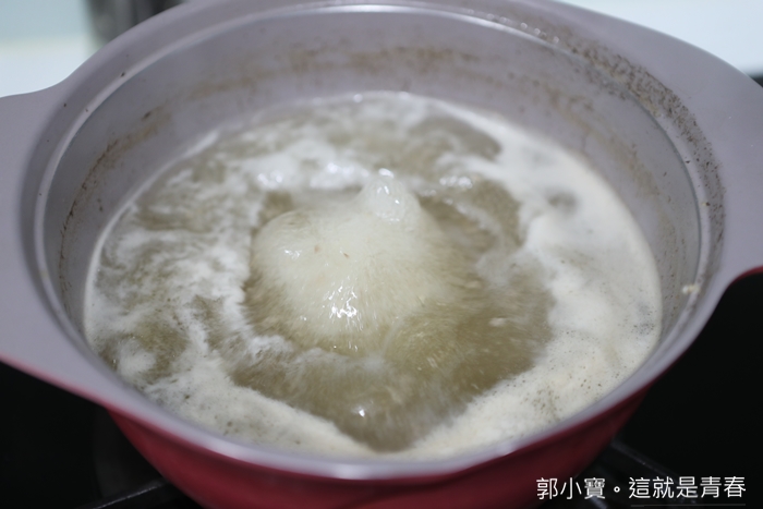 | 我先用肉熬了高湯,因為只有麵沒有肉對我來說不夠過癮,將肉湯的渣撈起後再將麵體放進去,大約煮5分鐘左右就可以了,這個時間是商家說最佳時間,你也可以依照你自己喜愛的麵體口感去增減時間。 |