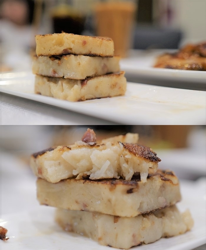 | 蘿蔔糕是我個人最愛的臘味蘿蔔糕,臘味蘿蔔糕是香港人過年才吃的到美食,鹽香四溢且口感柔軟,臘味跟蘿蔔的清甜很搭,雖然搶走蘿蔔不少風采,但是這就是臘味蘿蔔糕的迷人之處。 |