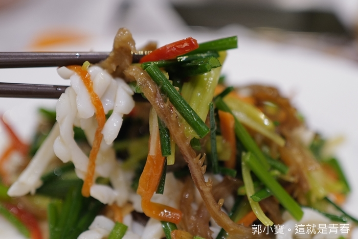 | 很喜歡的一道熱炒,花枝、涼皮、芹菜等一起爆炒,一起夾著入口的口感層次非常豐富,我個人很喜歡這道菜。 |
