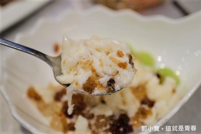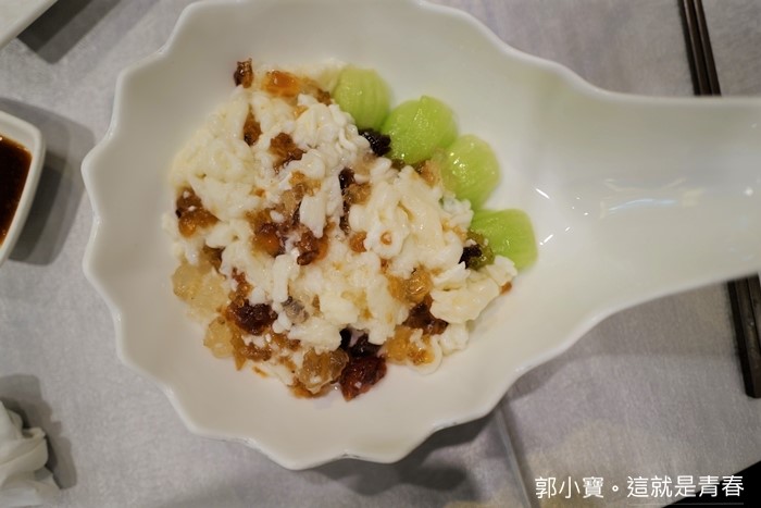 | 這一道也是讓我很驚艷且喜歡的一道,桃膠混著蛋白還有鮮奶一起炒,入口的滋味我真的還一時間不知到怎麼表達,QQ軟軟的口感我超喜歡,Cola也很捧場,牙口不好的老人家也很方便食用,來增加點膠原蛋白的好餐點,推薦! |