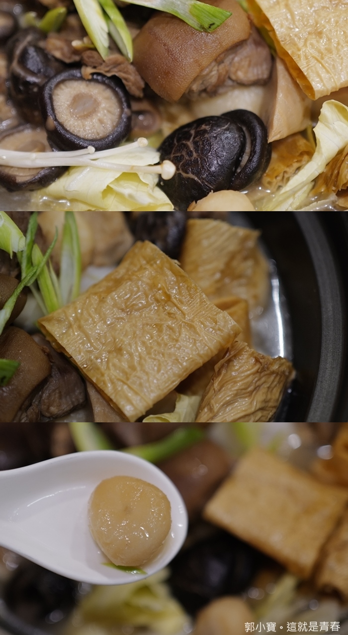 | 料超多又實在,枝竹羊腩煲的精隨在於,就是要有一點點的羊騷味,我個人超喜歡這剛剛好一點點的羊騷味,但是太妃比較不喜歡羊騷味,所以還滿看人吃的,不過應該是有加了甘草跟料酒,所以羊騷味大部分都去除掉了,超推薦的冬令進補煲湯。 |