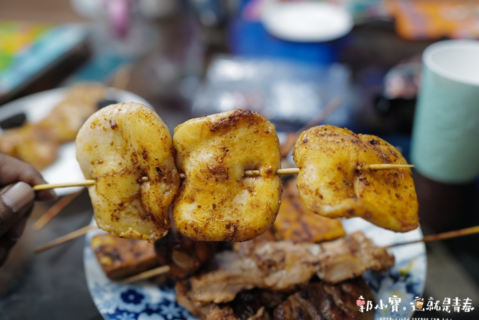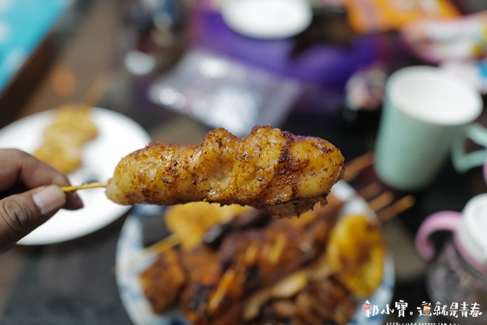 | 老實說她們家烤出來的顏色都非常不錯,看起來非常誘人,醬汁的部分吃起來頗像以沙茶為主的醬汁,所以有些商品烤得較乾的時候會吃到沙沙的口感,但是整體來說這醬汁是不錯的。 |
