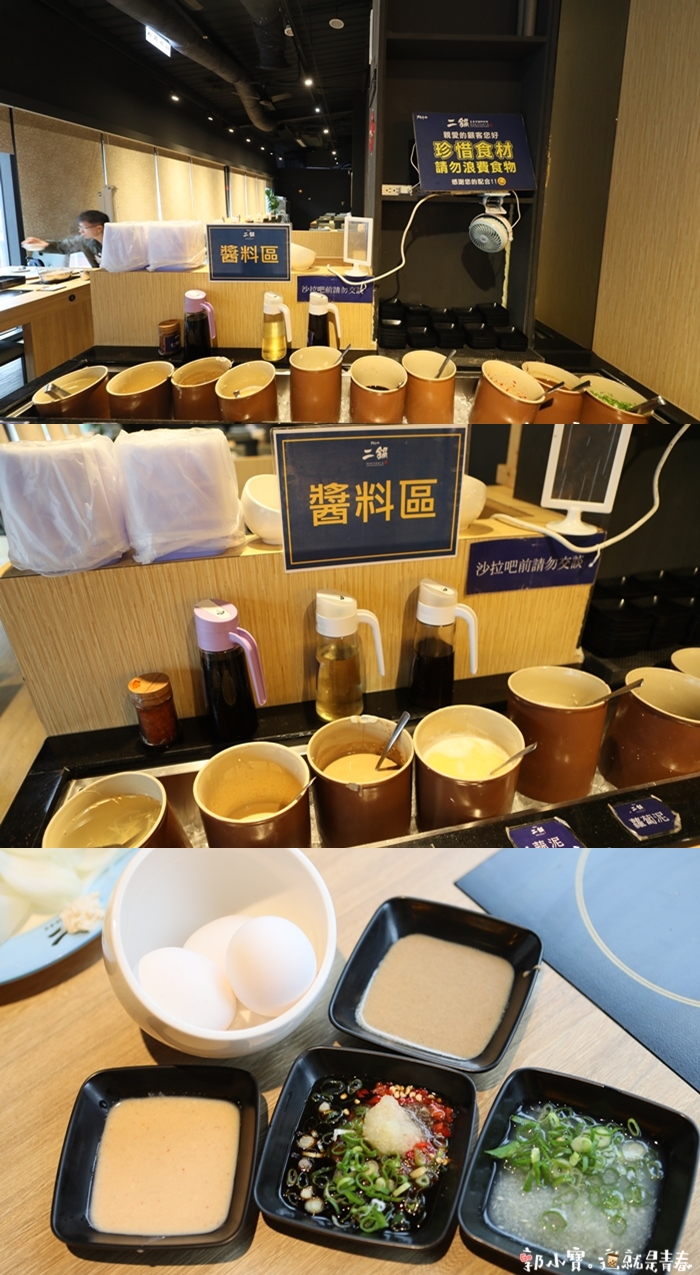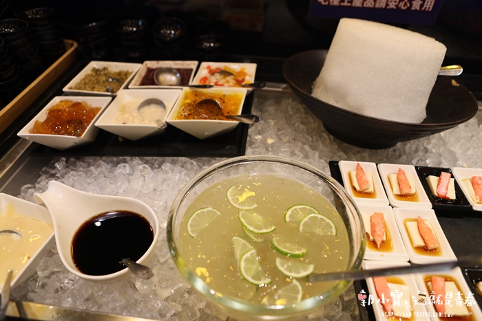 | 除了平日中午328元六款肉品吃到飽以外,二鍋壽喜燒放題還有超豐富的自助吧,說真心話,真的比X葉小火鍋吃到飽好太多了,自助吧的種類非常多,除了有沙拉吧跟各式各樣的蔬菜以外,重點是都非常新鮮,很多需要冷藏的食材都特別在底下鋪上厚厚的冰塊保鮮。 |