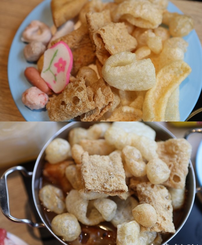 | 這單純是我因為我真的超愛炸豬皮跟豆製品,因為我覺得這些東西就是麻辣鍋的好朋友,我真的一直夾這個,太妃都說我是賠錢貨,怎專吃這個XDDD |