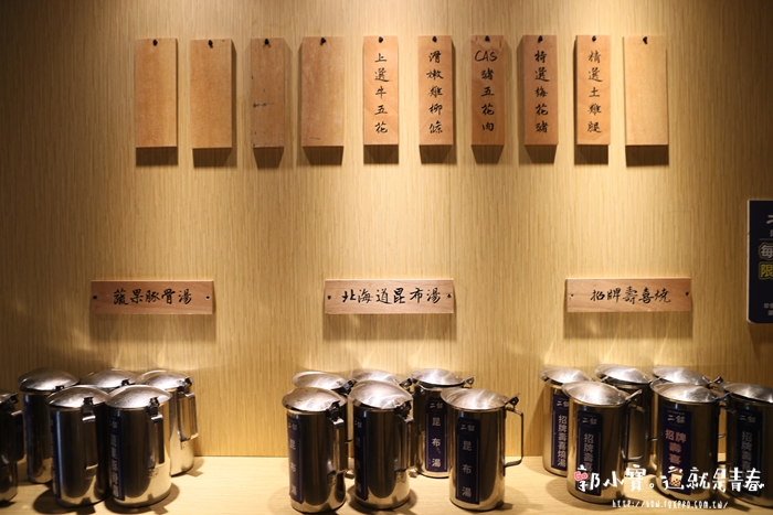 | 差點忘記分享,加湯的部分是需要自己去拿湯壺加取的,工作人員都已經將各種湯頭分類好了。 |