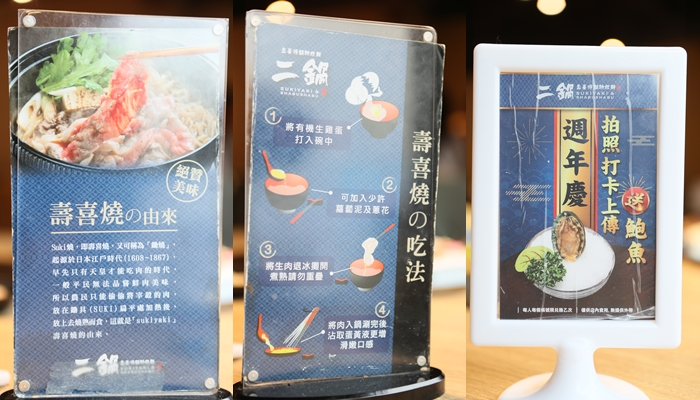搭乘到五樓就可以馬上看到鬥牛士二鍋壽喜燒放題的招牌,二鍋是鬥牛士集團旗下的壽喜燒品牌,鬥牛士真的是許多人的回憶,我還記得我當初高中第一份打工就是在鬥牛士當工讀生,鬥牛士的品質尤其在牛肉這部分幾乎是老手了,品質非常穩定!