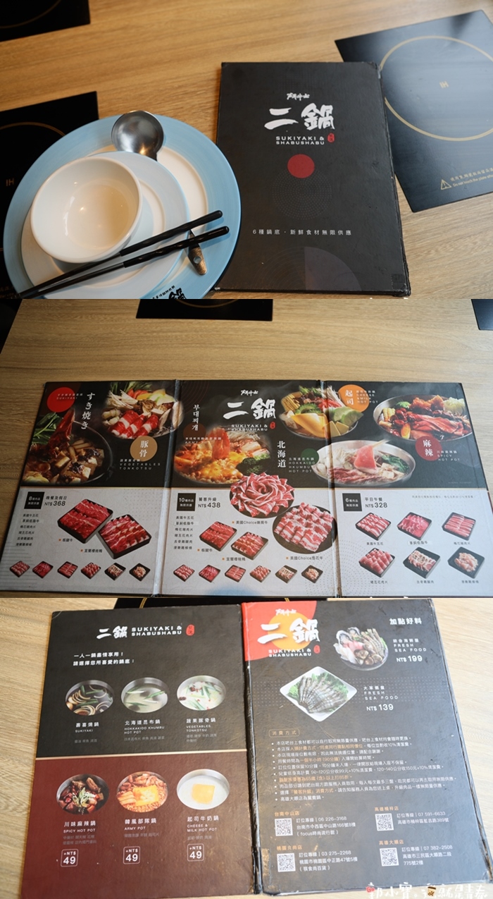 | 二鍋是屬於吃到飽的類型,主要的選擇有三種,平日午餐328源就擁有高達六種的肉品,且裡面也有牛肉的選項,晚餐及例假日就是368元,368元總共八種肉品可以選擇可以選擇,或許你也可以升級438元,肉品的選擇更是大爆發,全部有十種肉品,重點是平日328裡面就有牛肉算是屌打桃園大部分的吃到飽店家! |