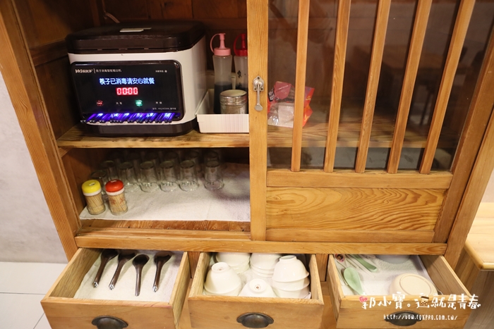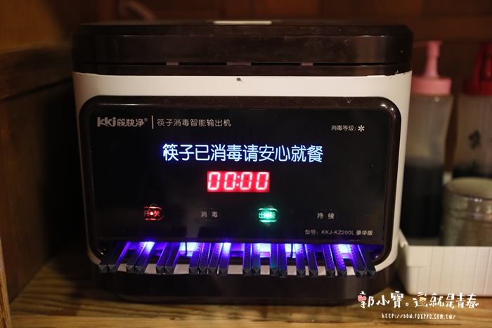 | 餐具需要自己,餐具也擺放的很整齊,這一點也很大心,少數會整理那麼乾淨的小吃店,且筷子都是消毒過的,還是自動抽取式的消毒機。 |