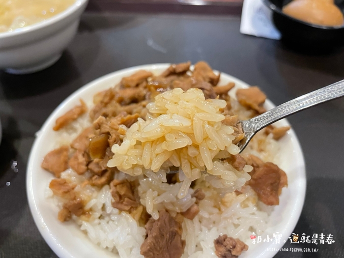 | 雖然賣像跟我記憶中的不一樣,但是一上來的時候我就知道這碗米糕是我喜歡的,糯米主的顏色非常好看,淋上湯汁有點像是雞汁,帶點鹹度真的好順口,糯米米粒每一顆都主的恰到好處,在搭配點歲肉燥?貞的瞬間就被我掃光了,不過嘉義用的器具是叉子,真的很特別,米糕都會附上一碗柴魚湯,很大心! |