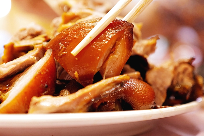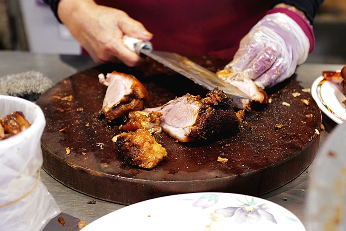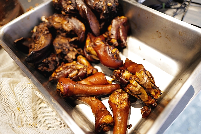 | 店門口外就有超多阿姨在這邊處理超多超大鍋的豬腳,豬腳的顏色看起來都超漂亮的,凡是過年過節就是海鴻飯店爆炸忙的日子,就連平日的饕客也是絡繹不絕,除了豬腳以外還有豬的其他部位。 |